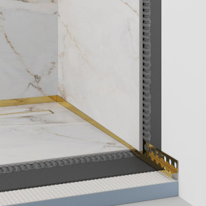 PARAMETRY:Balení: 1 ksHmotnost balení: 0,3  kgDruh výrobku: spádový stěnový profil Materiál: nerez Barva popisná: gold Barva základní: žlutá Povrch: lesk Povrchová úprava: PVD Výška hrany: 11 ...