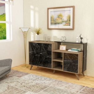 Dotaz na produkt Na splátky ještě dnesKomoda kombinuje moderní design s funkčností, díky čemuž je ideálním řešením pro uspořádání vašeho obývacího pokoje. Nabízí praktické úložné prostory díky třem plným dvířkům a regálku, což zajišťuje dostatek místa pro uspořádání všech vašich věcí. Kvalitní zpracování a estetický vzhled z ní činí stylový doplněk každého interiéru.