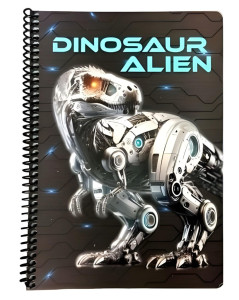 Spirálový sešit Dinosaur Alien od výrobce Back Me Up. Typ: Spirálový sešit. Design: Dinosaur Alien. Rozměry: 17x25 cm (B5). Počet listů: 70 listů, linkovaný papír s okrajem. Výrobce: Gimsa. Giovas S.A.Konopi 19400 Greece info@giovasgroup.com