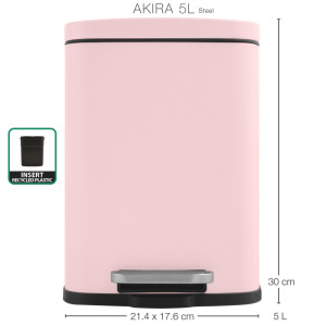 PARAMETRY:Hmotnost balení: 0,97  kgDruh výrobku: odpadkový koš Materiál: ocel Barva popisná: růžová Objem: 5 lŠířka: 21,4  cmVýška: 30  cmHloubka: 17,6  cmSérie: AKIRA