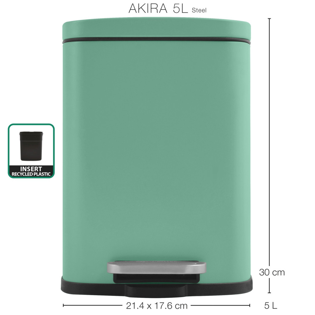 Spirella pedálový odpadkový koš AKIRA matná zelená ocel 5 L 10.19838