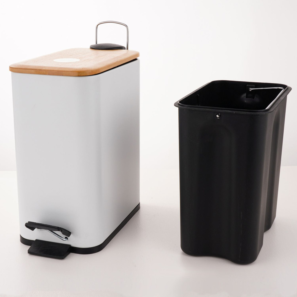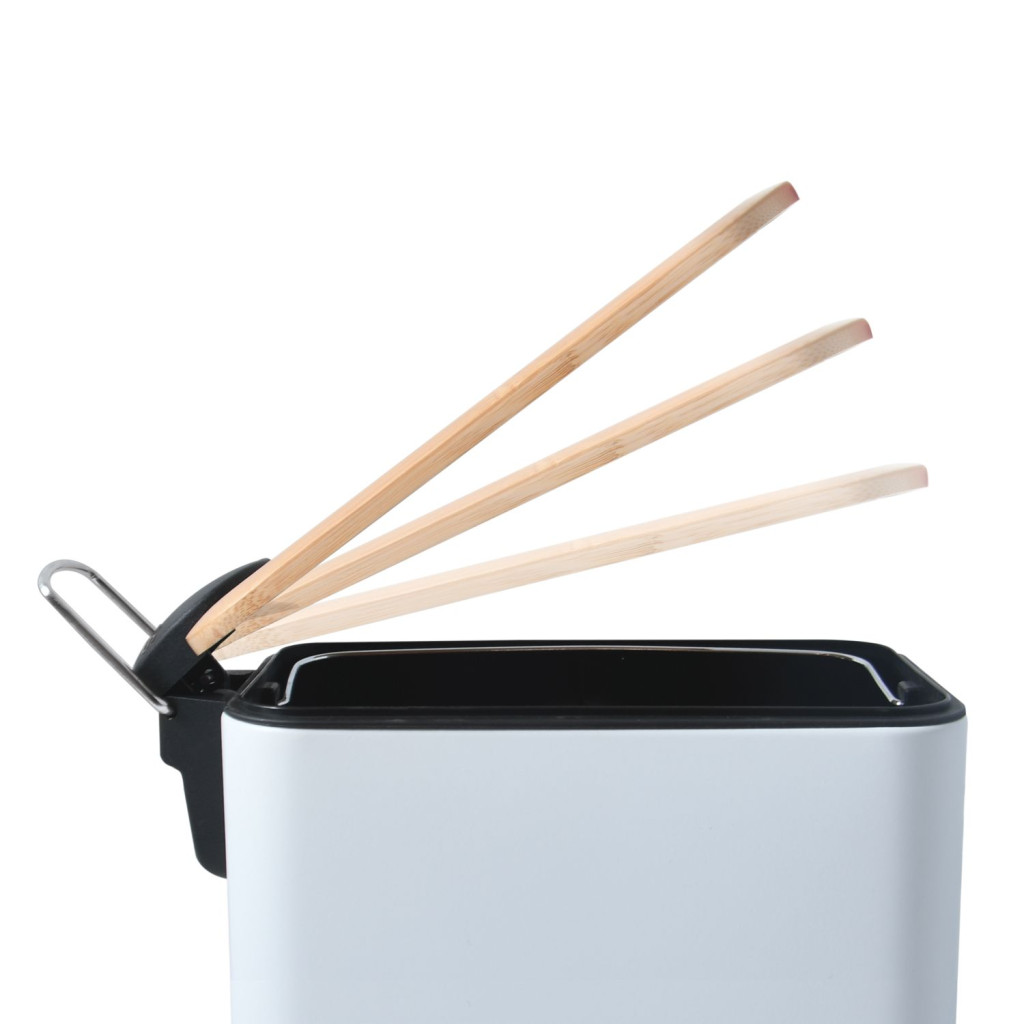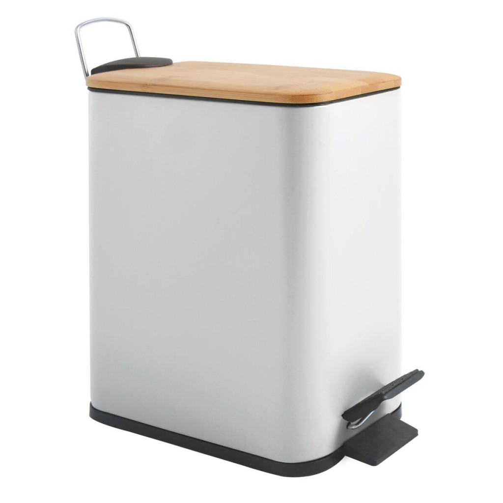 Spirella pedálový odpadkový koš ERIK bílá ocel bambusové víko 5 L 10.22581