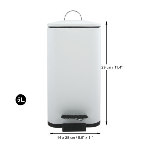 PARAMETRY:Hmotnost balení: 1,17  kgDruh výrobku: odpadkový koš Materiál: ocel Barva popisná: bílá Barva základní: bílá Objem: 5 lŠířka: 14  cmVýška: 29  cmHloubka: 28  cmSérie: ERIK
