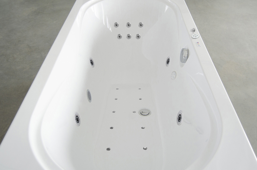 Hydromasážní trysky se ovládají elektronicky ovladačem zabudovaným na koupelnovém zařízení.