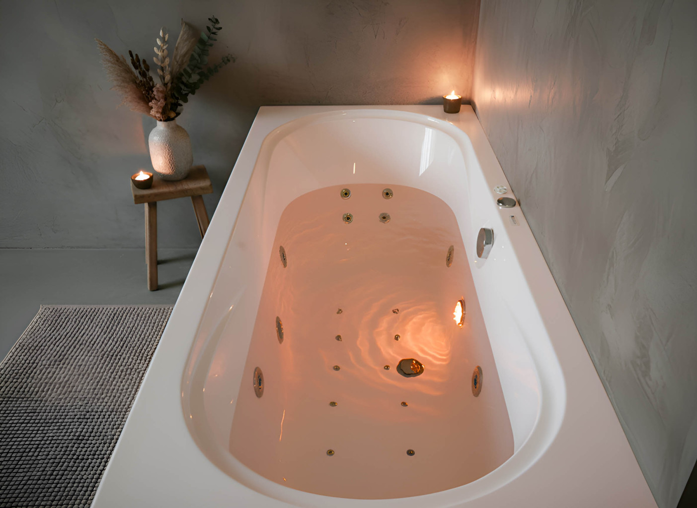 Výhodou této hydromasážní vany s chromoterapií je možnost přidání bylinných či relaxačních extraktů.