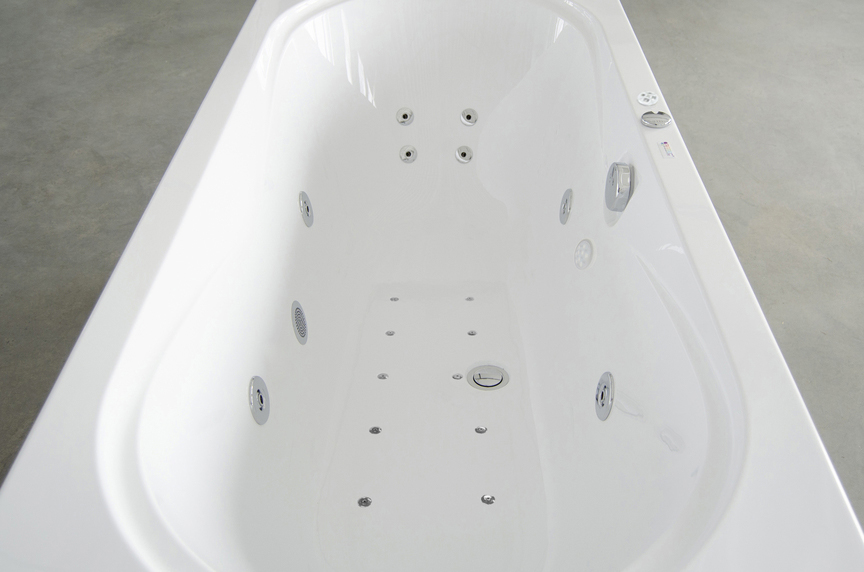 Hydromasážní trysky se ovládají elektronicky ovladačem zabudovaným na koupelnovém zařízení.
