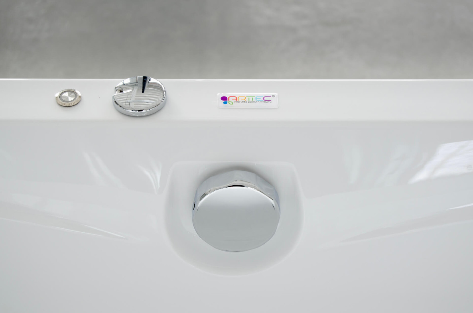 Hydromasážní vana ARTTEC SPIRIT + CHROMO nabízí LED osvětlení v 16-ti odstínech barev, 4 velké masážní trysky, 4 malé trysky na záda a 2 malé trysky na nohy k maximální relaxaci a masáži celého těla. Uvolňuje tak svalové napětí, a to především v oblasti krku a zad. Díky propracovanému masážnímu systému dochází k dokonalému prokrvení pokožky a stimulaci lymfatického systému. Masážní proces může být využit i k léčebným účelům.