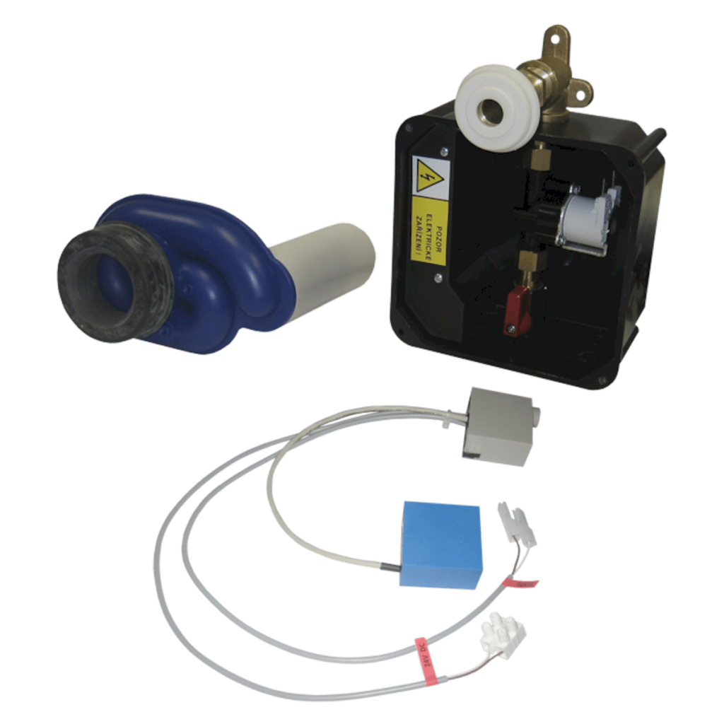 Praktický radarový splachovač od známé společnosti Sanela, s elektromagnetickým ventilem, vtokovou armaturou s těsněním a integrovaným napájecím zdrojem.