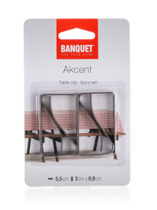 Spony na ubrus AKCENT slouží pro uchycení a napnutí ubrusu na desku stolu.
