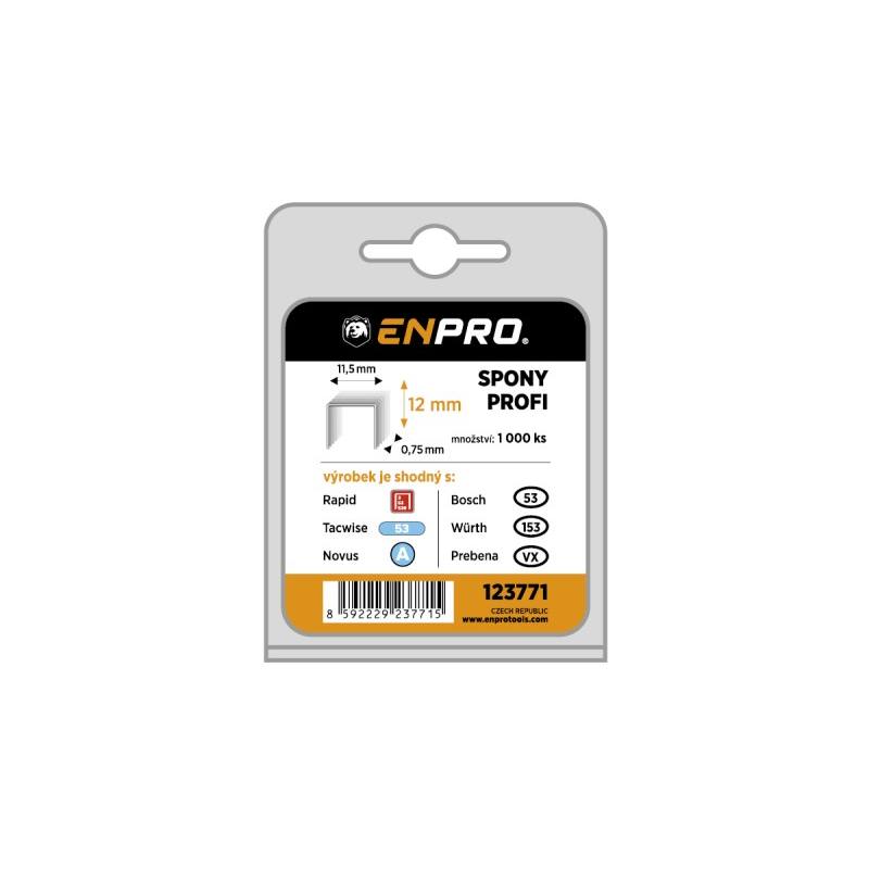 spony PROFI ENPROvelmi kvalitní ocelové spony do sponkovačkytyp spon: 53šíře spon: 11,5 mmsíla spon: 0,75 mmvhodné pro: 123754,123755,123747,123753