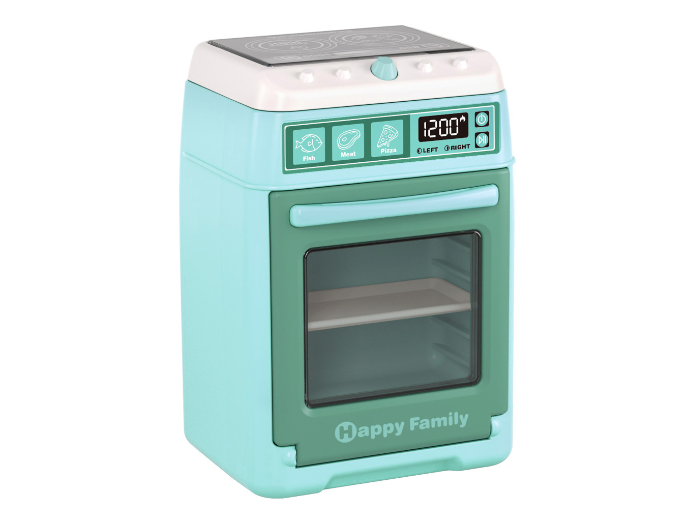 Dotaz na produktSporák a trouba s efekty. Velikost 14 cm. Vydává světelné a zvukové efekty. Baterie 3xAA nejsou součástí balení. Přesné rozměry 11x9x14 cm.