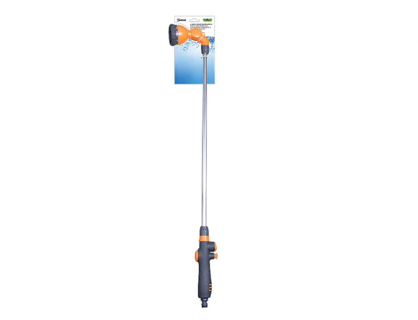 Dotaz na produktZahradní sprcha s devíti polohami, plastovou hlavicí a koncovkou. Délka kovové tyče: 90 cm. Barva: černo oranžová.