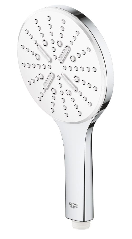 Ruční sprcha GROHE Rainshower 130 SmartActive. 130mm sprchová hlavice se 3 režimy proudu. Chromová povrchová úprava s bílým diskem. Vyrobeno v Německu. 26544LS0