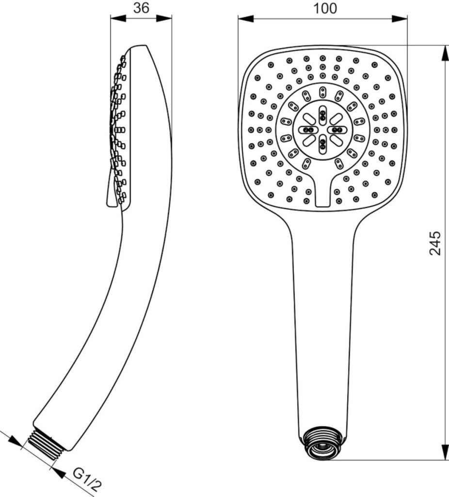 Dotaz na produktIdealrain Cube M3 ruční sprcha. 3-funkční ruční sprcha 100 x 100 mm (déšť / tropický déšť / masážní proud). Funkce Anti-Kalk (proti tvorbě vodního kamene). Připojovací závit G1/2.