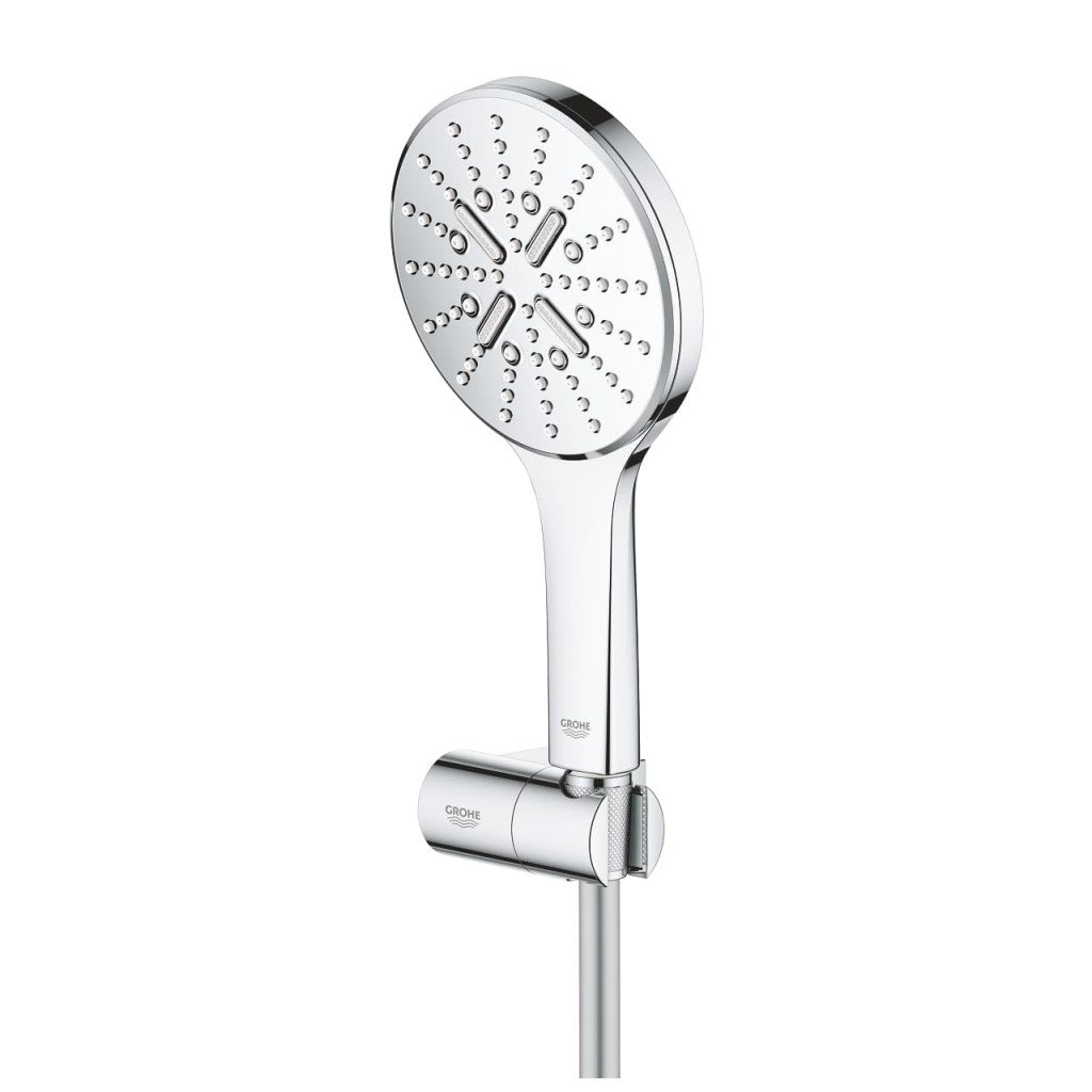 Dotaz na produkt Na splátky ještě dnesStylová sprcha GROHE Rainshower 130 SmartActive je snadným způsobem, jak dát vaší koupelně okamžité vylepšení! Je dodávána s nastavitelným držákem na stěnu a sprchovou hadicí TwistFree Silverflex (1500 mm). Uvnitř se navíc nachází to nejlepší z technologií GROHE. GROHE SmartTip, ergonomický ovladač na zadní straně rukojeti, vám umožňuje ovládat tři režimy proudu – pulsující GROHE ActiveMassage, který přináší zcela novou úroveň masážní síly, osvěžující Jet a režim Rain, který je jemný jako letní déšť. Jakmile vypnete přívod vody, technologie GROHE DripStop zajistí, že nebude docházet k obtěžujícímu odkapávání vody. Díky technologii GROHE DreamSpray je proud vody ze všech trysek dokonale vyvážený pro maximální spokojenost a silikonové, odvápňovací trysky SpeedClean se také velmi snadno čistí. Technologie GROHE EcoJoy omezuje průtok vody na 9,5 l/min, ale zároveň přináší naprosté pohodlí. Chromová povrchová úprava GROHE StarLight je odolná proti poškrábání a vypadá dokonale po mnoho let. Vnitřní rozvody Inner WaterGuide zabraňují, aby se vnější povrch sprchy příliš zahříval, čímž chrání nejen vaši citlivou pokožku, ale také chromový povrch. Sprchový set GROHE Rainshower 130 SmartActive – jednoduše luxusní sprchování!