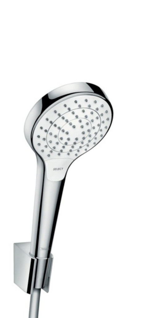 SadaPorter Set Croma Select S VarioVás rozmazluje rozmanitým potěšením ze sprchování a spoustou pohodlí. Koordinované typy paprsků lze nastavit přímo na hlavici sprchy. Stisknutím tlačítka se zvolí požadovaný sprchový proud podle nálady (Select).