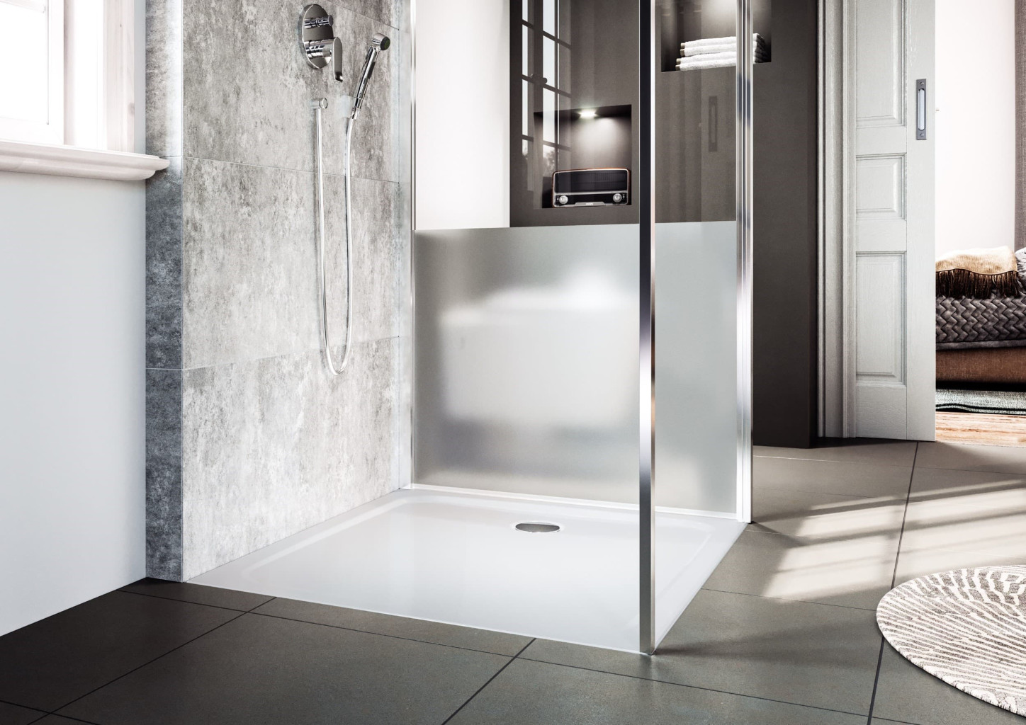 • sprchová vanička pro montáž v úrovni podlahy