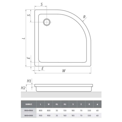 Sprchová vanička čtvrtkruhová Roth 90x90 cm akrylát 8000026