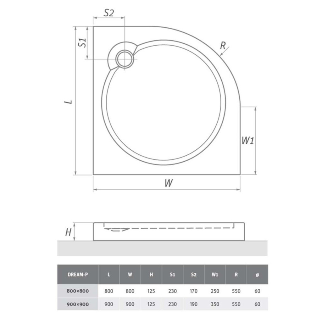 Čtvrtkruhová samonosná sprchová vanička z koextrudované skořepiny s nosičem GREENSIR. Tato samonosná vanička ze série PROJECT se snadnou instalací i údržbou si získala už velké množství zákazníků. Její skořepina je vyztužená modernímnosičem GREENSIR, instaluje se přímo na podlahu a její velkou předností je výhodný poměr ceny a kvality. Navíc je tato vanička dodávána včetně sifonu DREAM-P.