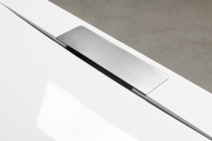Praktická instalace je umožněna díky promyšlenému designu vaničky bez sifonu a nožiček, což ulehčuje montážní práce a napomáhá jednoduchému propojení s odtokovým systémem podle konkrétních požadavků prostoru.