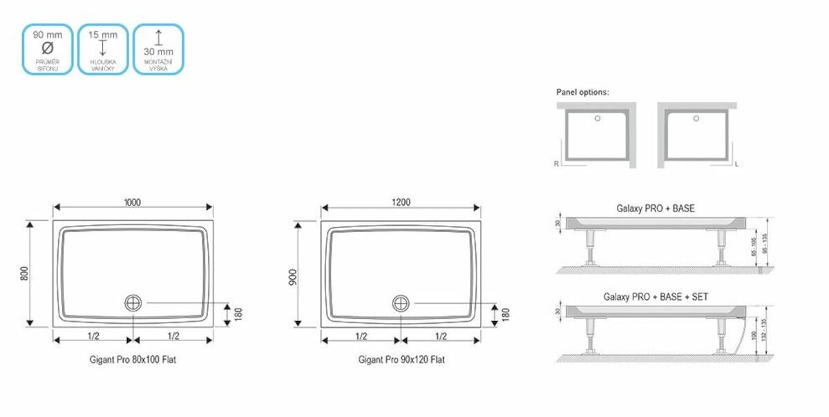 Vanička Gigant Pro Flat je vhodná pro sprchové kouty SRV2-S+SRV2-S, ASDP3+APSS, SDZ3+PSS, SDOP+PSS, BLRV2K+BLRV2K, BLDP2+BLPS, BLDP4+BLPS, NRDP2+RPS, NRDP4 + RPS, PDOP2+PPS, CRV1+CRV1, CRV2+CRV2, CRV2+CPS, SMSD2+SMPS, BSDPS a pro sprchovací prostory řešené sprchovými dveřmi ASDP3, SDZ3, SDOP, BLDP2, BLDP4, PDOP1, PDOP2, NRDP2, NRDP4, CSD1, CSD2, CSDL2, SMSD2, BSD2, BSD3.