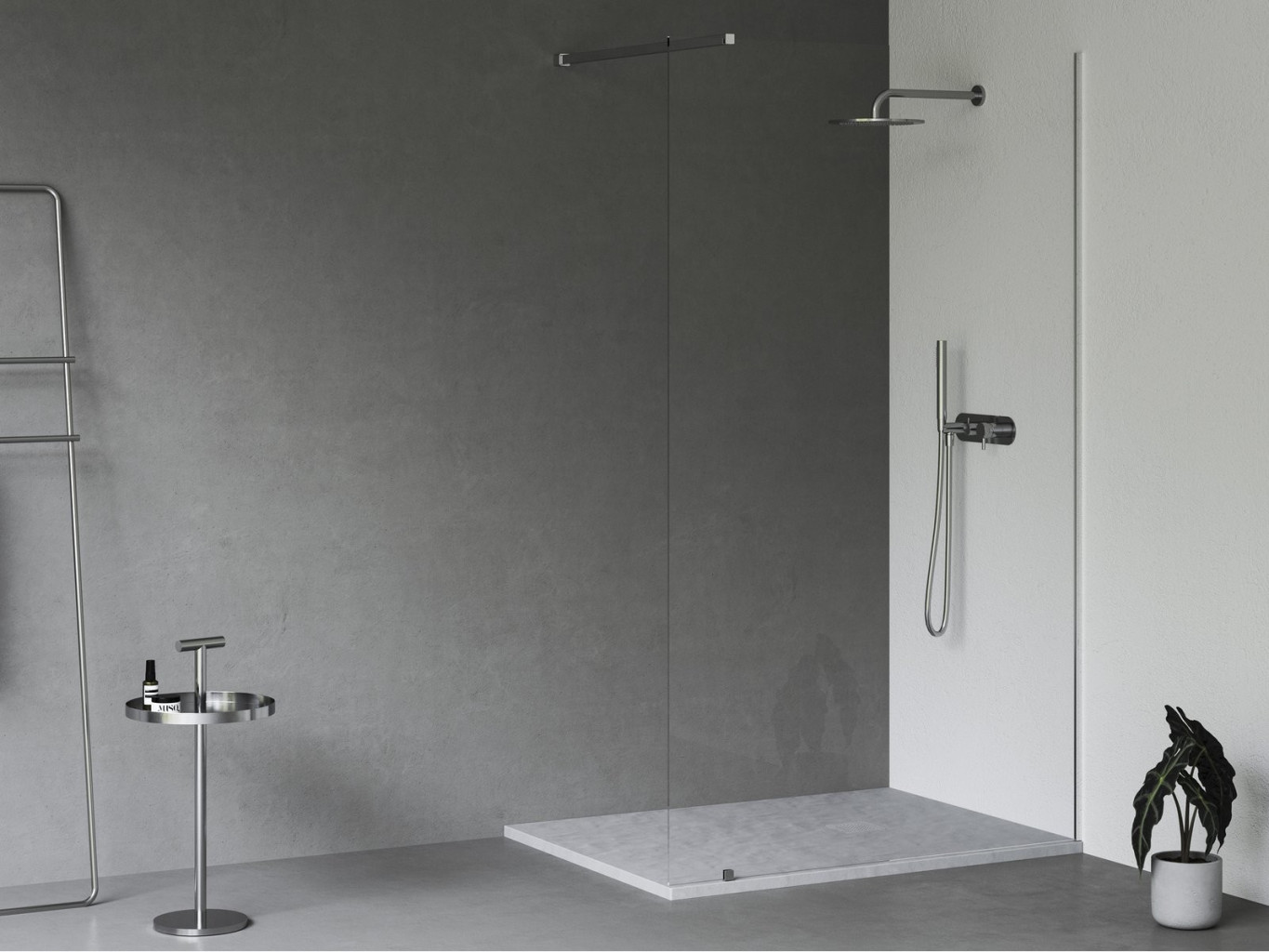 Dotaz na produkt Na splátky ještě dnesČtvercová sprchová vanička Slate Pro z odlehčeného litého mramoru. Strukturovaný povrch imitující břidlici, potažený antibakteriální vrstvou gel coat nejnovější generace. V barevném provedení Smoke Grey.