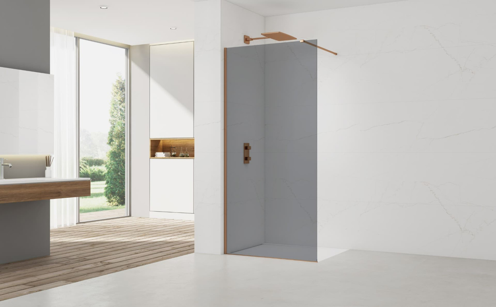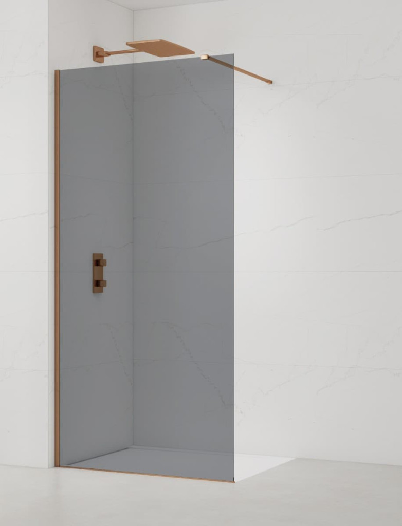 PARAMETRY:Druh výrobku: sprchová zástěna Walk-In Barva popisná: broušený rose gold Barva základní: bronz Orientace: levá i pravá Výbava: s profily a zavětrováním Balíček produktů: ano Povrchová...