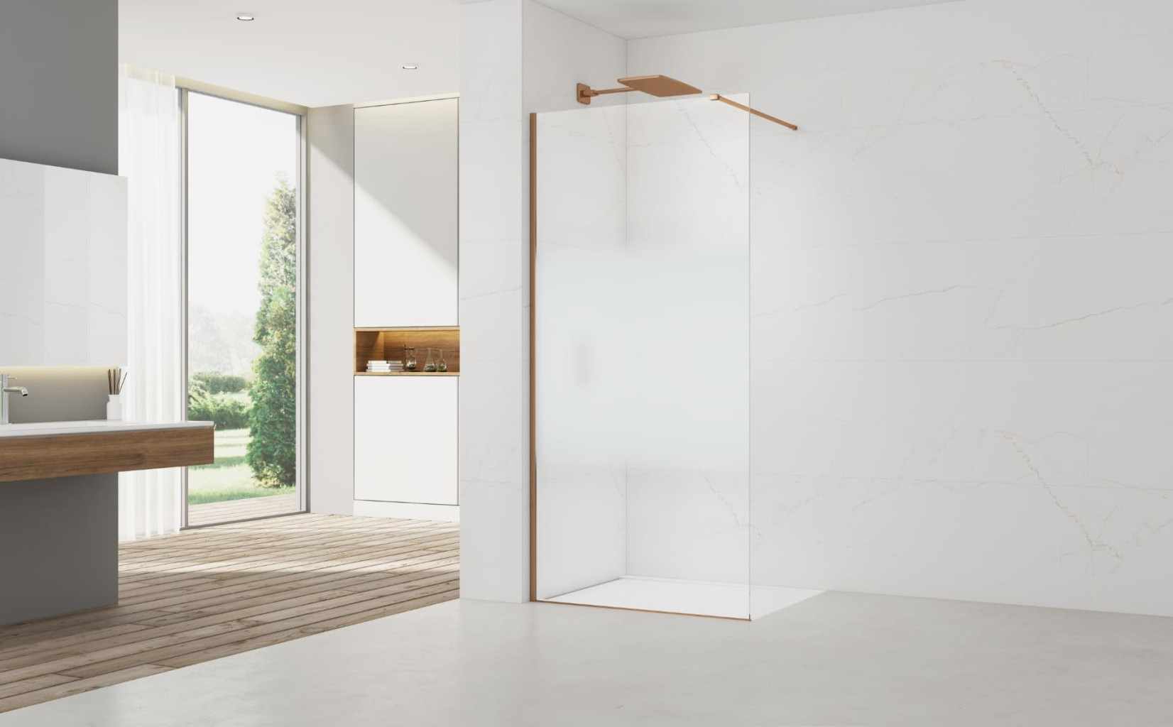 PARAMETRY:Druh výrobku: sprchová zástěna Walk-In Barva popisná: broušený rose gold Barva základní: bronz Orientace: levá i pravá Výbava: s profily a zavětrováním Balíček produktů: ano Povrchová...