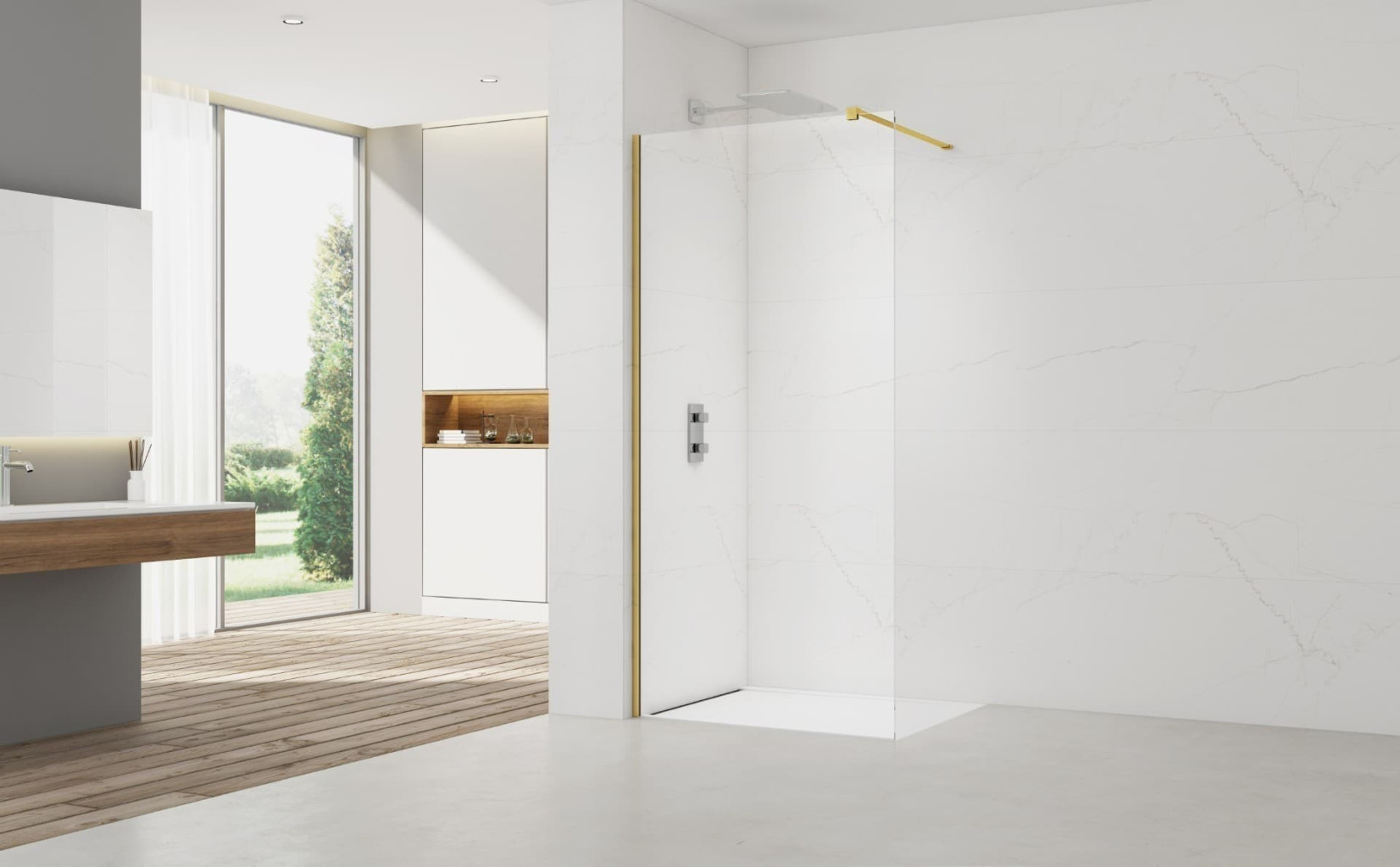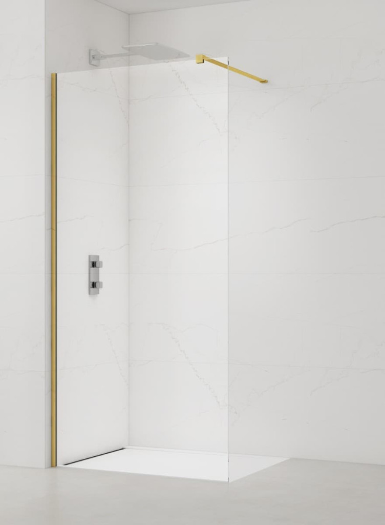 PARAMETRY:Druh výrobku: sprchová zástěna Walk-In Barva popisná: zlatá Barva základní: zlatá Orientace: levá i pravá Výbava: s profily a zavětrováním Balíček produktů: ano Povrchová úprava: Easy...