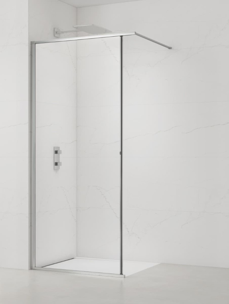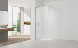 Sprchové kouty typu walk-in nabízí trendy a jednoduché řešení nejen do malých koupelen, kde získáte pocit otevřeného a vzdušnějšího prostoru. Sprchová zástěna z transparentního bezpečnostního skla zabraňuje rozstřikování vody po celé koupelně, ale zároveň přináší volnost při vstupu do sprchy bez nutnosti otevírání dveří a překračování prahu. Průhledné 8 mm sklo dává příležitost vyniknout sprchové baterii či obkladům ve sprše. Šířka vstupu a tím pádem i celé sprchy lze přizpůsobit individuálním požadavkům díky nastavitelné šířce zavětrování (max 120 cm).