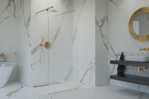 Balíček SATBWI100MSZAVZ obsahuje sprchovou zástěnu s extrémně odolným sklem 8 mm (SIKOWI100MS) a také 2x upevňovací rameno v zlatém provedení o nastavitelné délce až do 120 cm (SATZAV1Z). Balíček přináší všechny potřebné komponenty k sestavení sprchového koutu typu walk-in.
