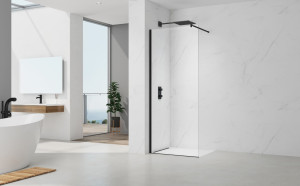 Sprchová zástěna z transparentního bezpečnostního skla (6 mm) zabraňuje rozstřikování vody po celé koupelně, ale zároveň přináší volnost při vstupu do sprchy bez nutnosti otevírání dveří a překračování prahu. Průhledné sklo dává příležitost vyniknout sprchové baterii či obkladům ve sprše. Šířka vstupu a tím pádem i celé sprchy lze přizpůsobit individuálním požadavkům díky nastavitelné šířce zavětrování (max 120 cm).