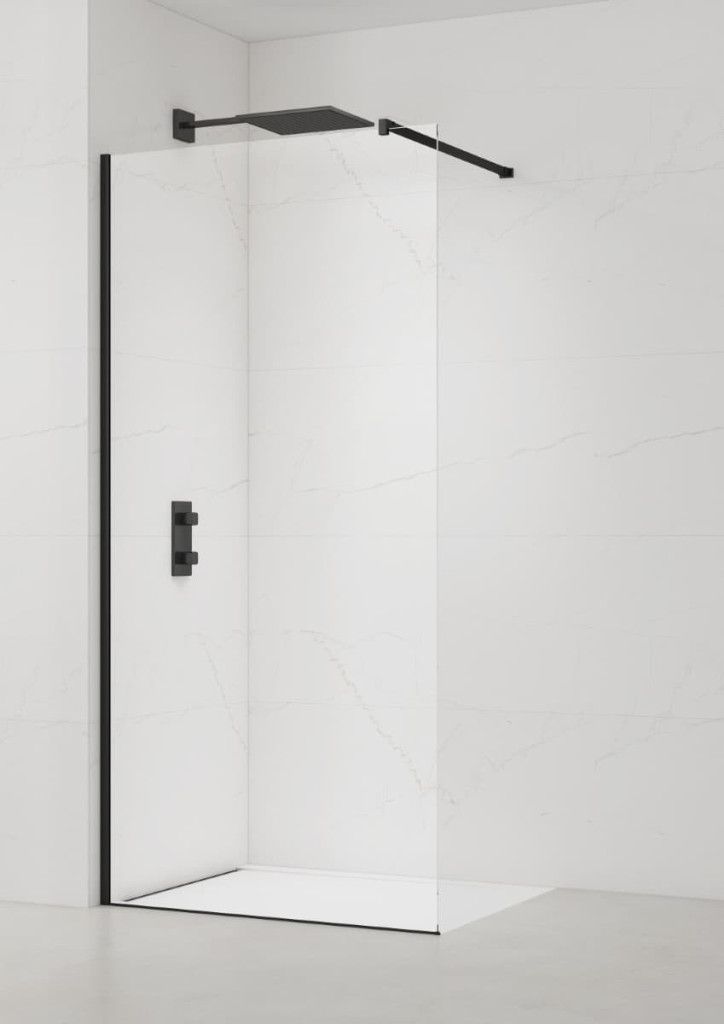 Obsah balení: Balíček SATBWI120PRC obsahuje sprchovou zástěnu s extrémně odolným sklem 8 mm o šířce 117 cm (), boční profil se spodní lištou a montážním balíčkem v černém provedení (SIKOWIPROFILC) a také upevňovací rameno v černém provedení o nastavitelné délce až do 120 cm (SIKOZAV1C). Balíček přináší všechny potřebné komponenty k sestavení sprchového koutu typu walk-in.