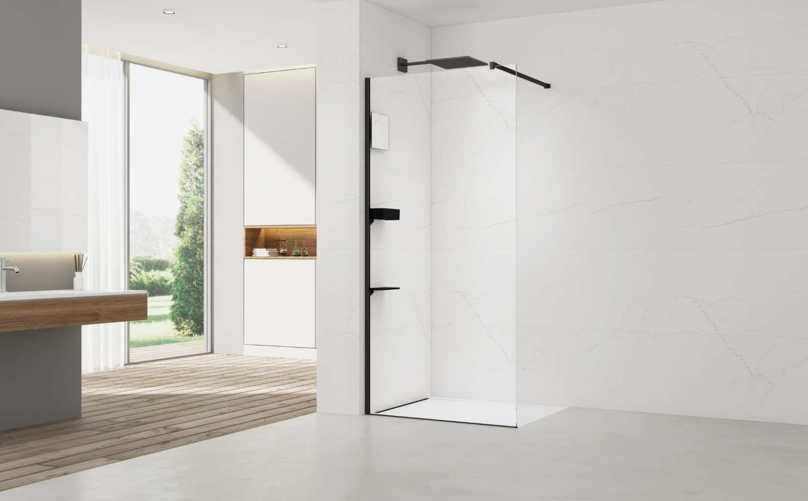 Sprchové kouty typu walk-in nabízí trendy a jednoduché řešení nejen do malých koupelen, kde získáte pocit otevřeného a vzdušnějšího prostoru. Sprchová zástěna z transparentního bezpečnostního skla zabraňuje rozstřikování vody po celé koupelně, ale zároveň přináší volnost při vstupu do sprchy bez nutnosti otevírání dveří a překračování prahu. Průhledné sklo dává příležitost vyniknout sprchové baterii či obkladům ve sprše. Šířka vstupu a tím pádem i celé sprchy lze přizpůsobit individuálním požadavkům díky nastavitelné šířce zavětrování (max 120 cm).