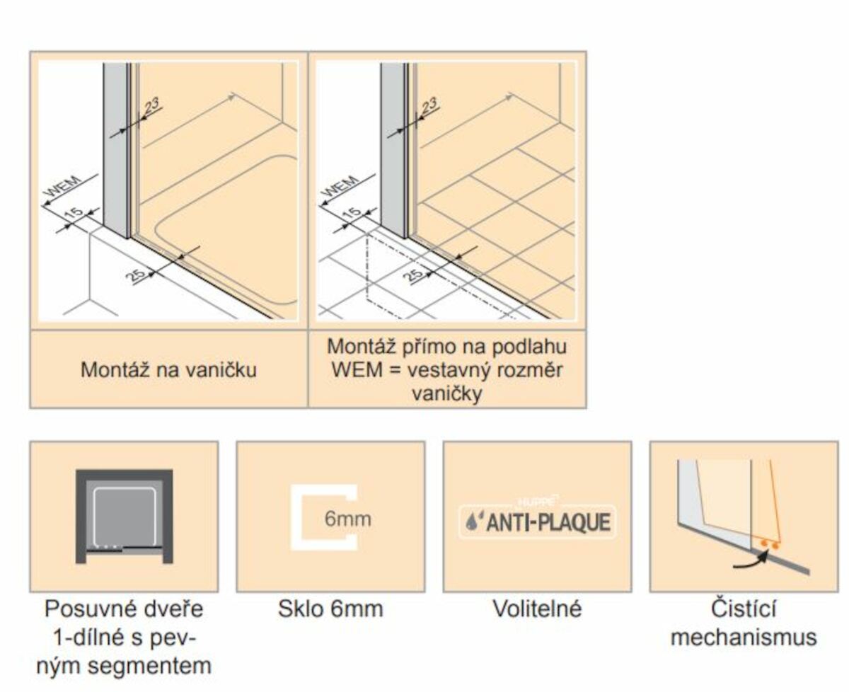 • Možnosti instalace - všechny kouty lze nainstalovat na sprchovou vaničku, ale také přímo na dlažbu v kombinaci se sprchovým žlabem.