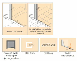 Kout je vybaven technologií Soft-close (dveřní segment posuvných dveří se pomalu dovírá k protilehlé boční stěně)