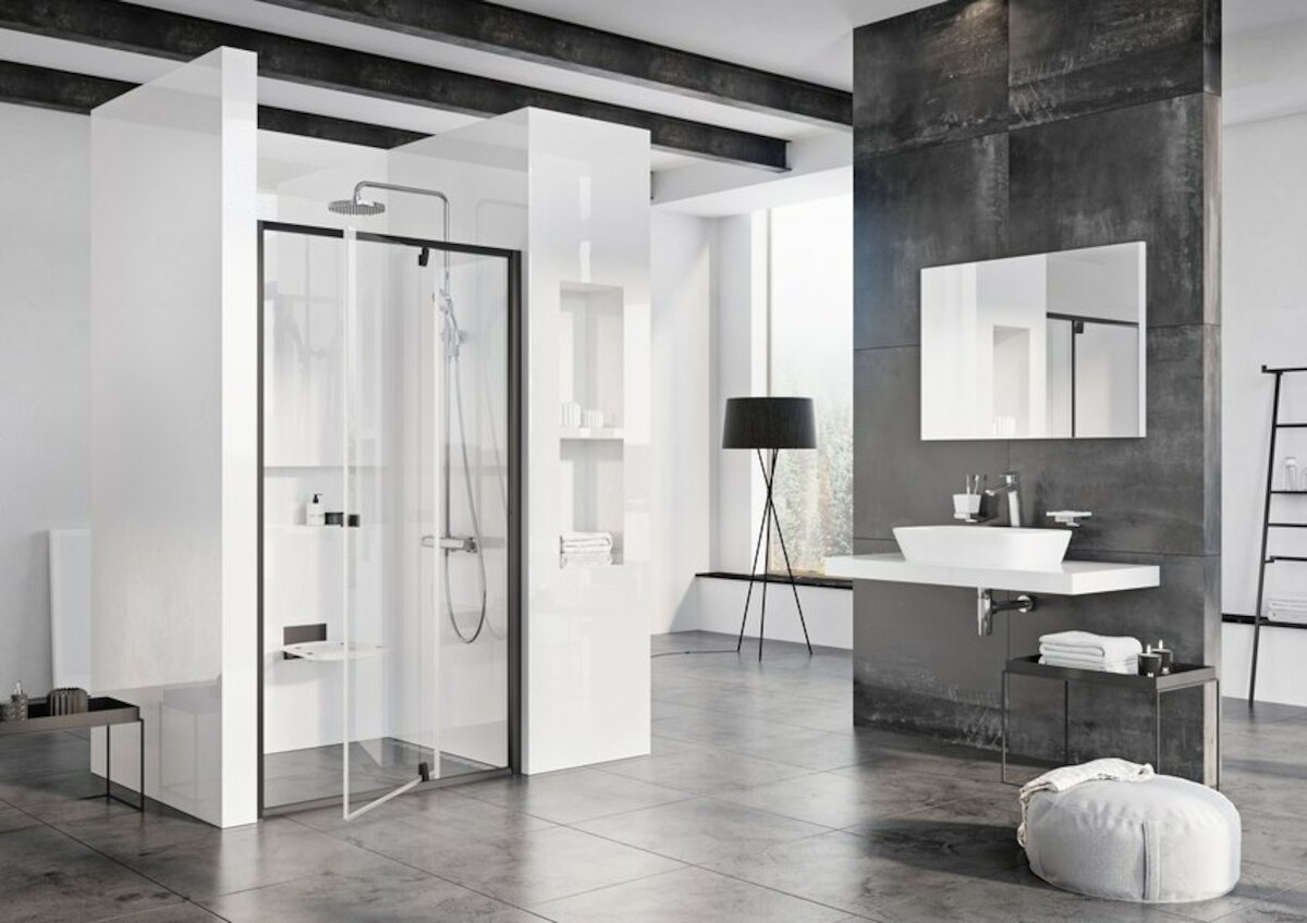 Minimum kovových profilů a maximum čistého bezpečnostního skla o tloušťce 6 mm. To jsou výrobky řady Pivot. Hodí se všude tam, kde chcete nechat vyniknout obklad stěn. Varianta Black zahrnuje černý rám a otočné panty v černé barvě. Skvěle kontrastují s plochami bezpečnostního skla a decentně přitahují pozornost.