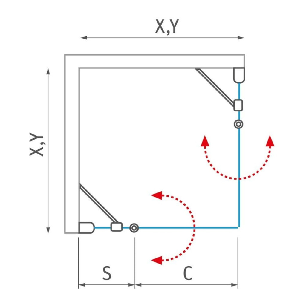 Sprchové dveře jsou vyráběny v pěti standardních velikostech - od 800 mm do 1200 mm. Přesná výška včetně kotvících elementů je 2023 mm.