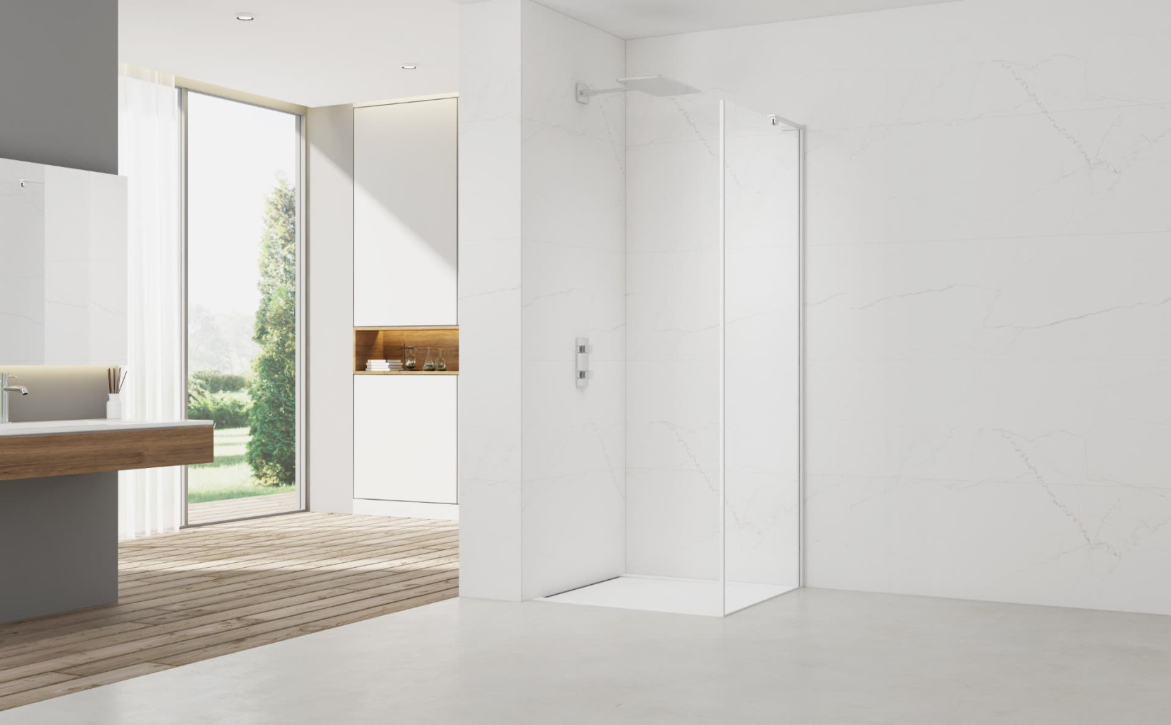 Balíček obsahuje sprchové dveře a profil SATMAGNIKAB, který využijete, pokud chcete umístit dveře do niky, aby se bezpečně zavřely. Balíček přináší všechny potřebné komponenty k sestavení otevíracích dveří do niky.