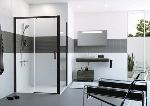 PARAMETRY:Balení: 1 ksDruh výrobku: sprchové dveře Barva popisná: černá Orientace: levá Výbava: bez vaničky Povrchová úprava: Anti-Plaque Výška: 200  cmSystém otevírání: posuvný Tloušťka pevné sklo:...