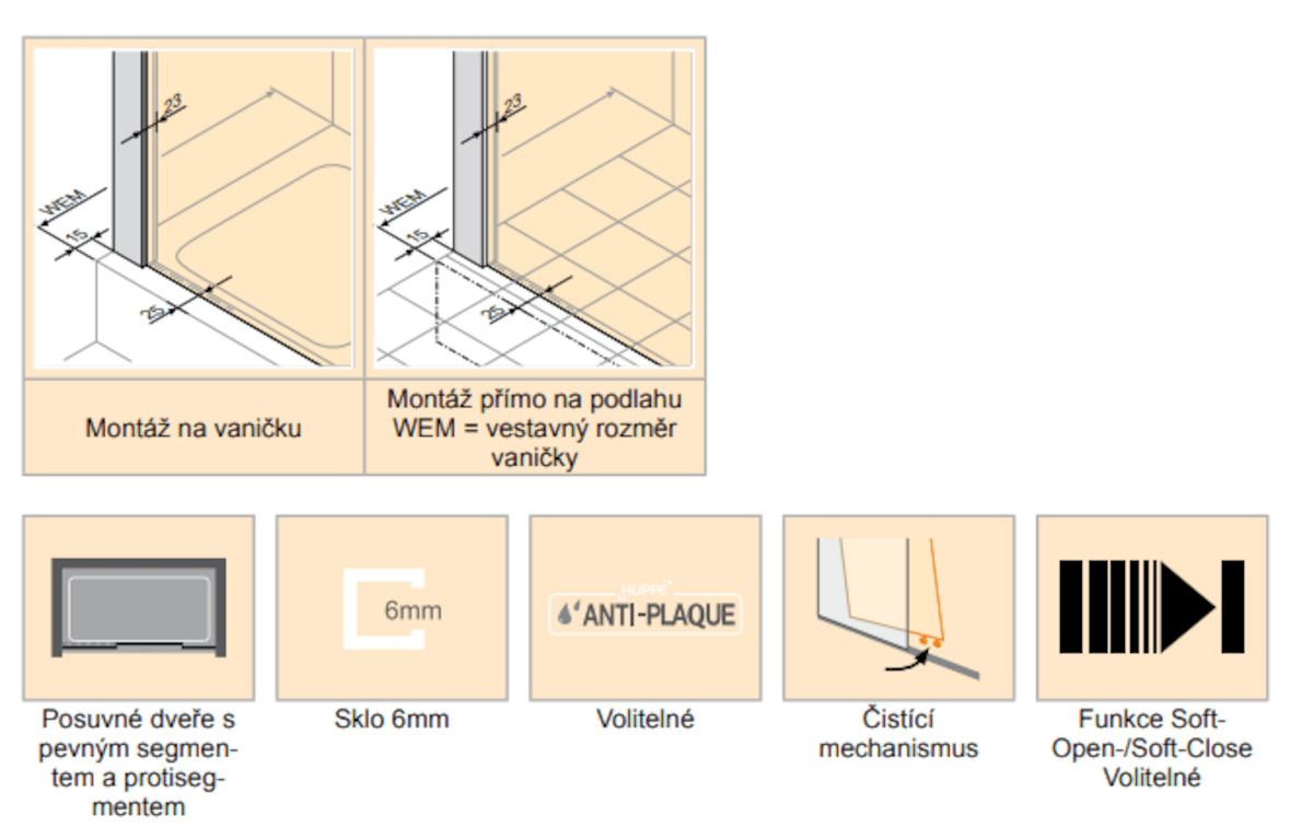 - Možnosti instalace - všechny kouty lze nainstalovat na sprchovou vaničku, ale také přímo na dlažbu v kombinaci se sprchovým žlabem.