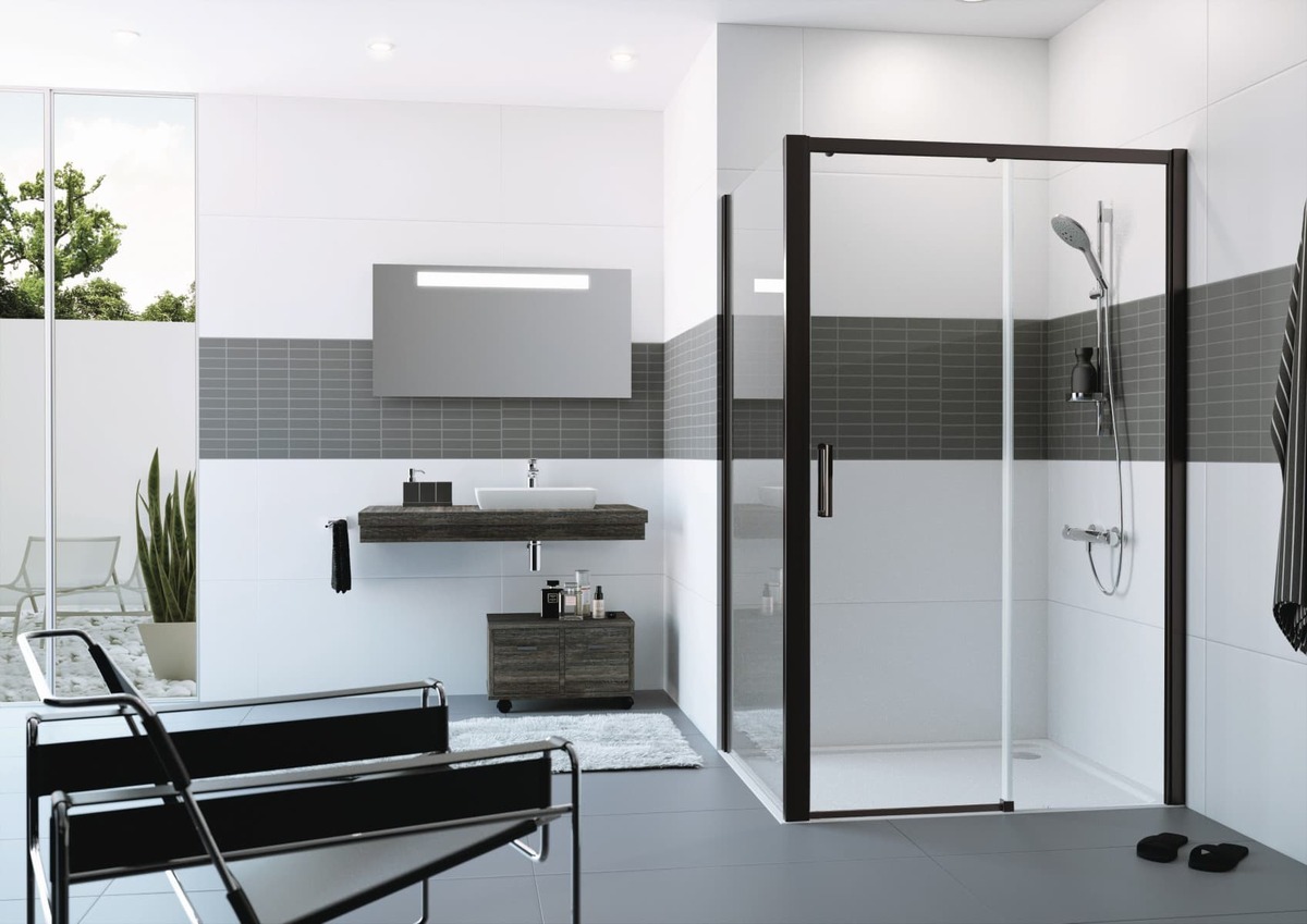 PARAMETRY:Balení: 1 ksDruh výrobku: sprchové dveře Barva popisná: černá Orientace: pravá Výbava: bez vaničky Povrchová úprava: Anti-Plaque Výška: 200  cmSystém otevírání: posuvný Tloušťka pevné sklo:...