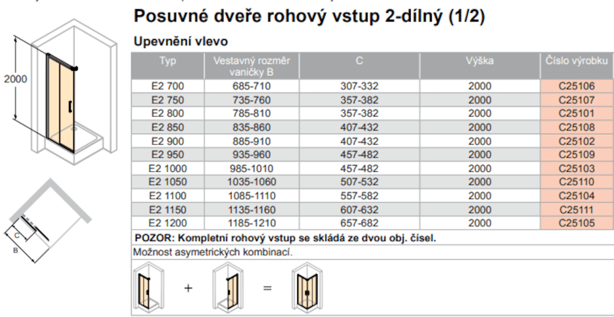 Pozor! Jedná se pouze o polovinu sprchového koutu. Kompletní výrobek se objednává dvěma položkami samostatných výrobků!