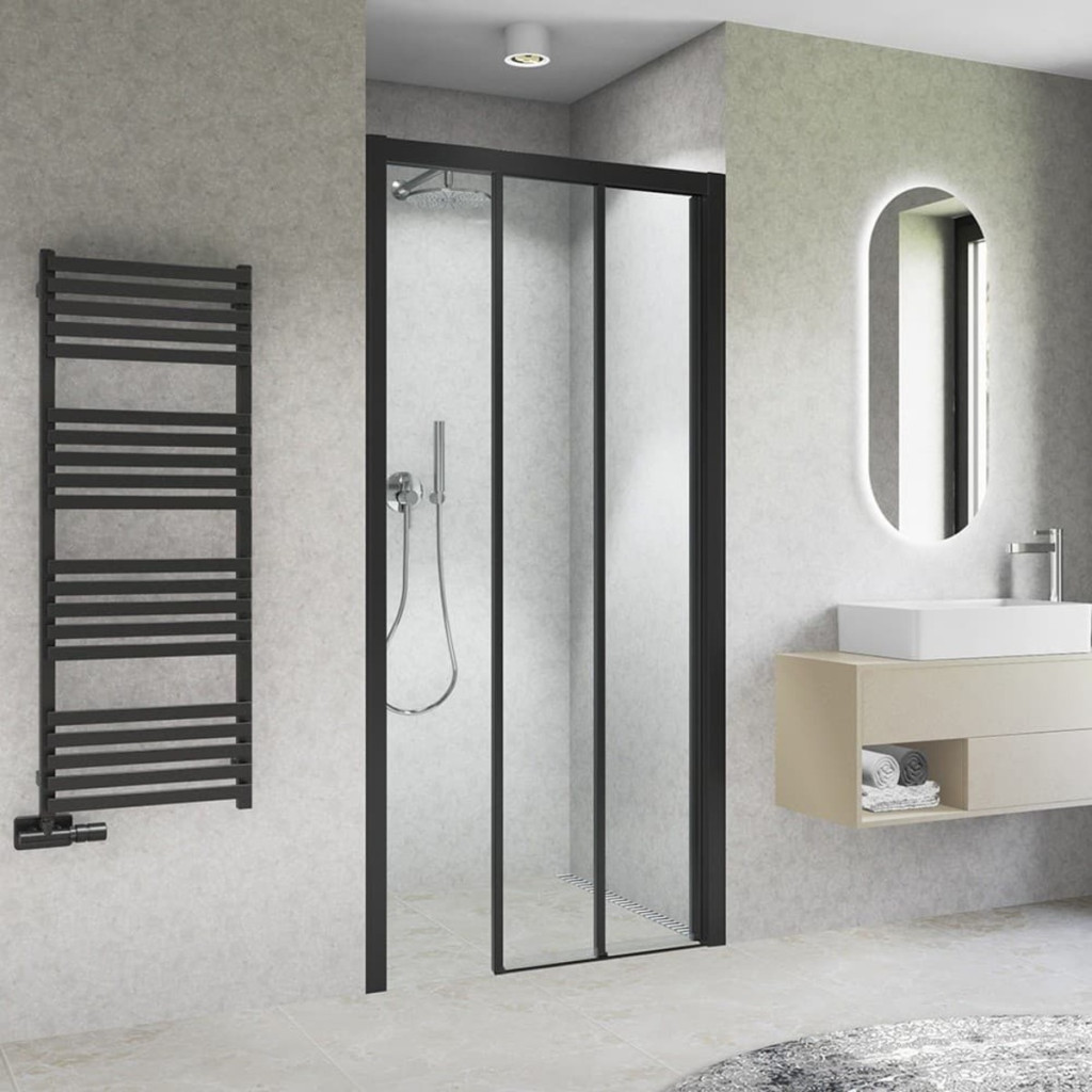 Elegantní třídílné posuvné sprchové dveře CI D3L/CI D3R pro instalaci do niky. Dostupné v luxusním provedení Brillant a moderním Černý elox. Zajišťují široký vstup a úsporu místa. Vyrobeny z 5mm tvrzeného skla Transparent s kvalitními pojezdy pro tichý chod.