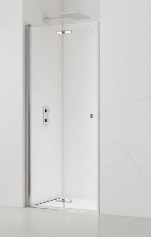 Sprchové dveře se vyznačují elegantním designem, zapuštěnými panty, kvalitním materiálem a snadnou údržbou. Kvalitní technické provedení dveří vám navíc zaručí dlouhodobou životnost. Součástí 6 mm bezpečnostního skla je povrchová úprava Easyclean, která usnadňuje čistění a minimalizuje usazování vodního kamene. Dveře jsou skládací a lze je složit přímo až na zeď. Montáž lze provést přímo na podlahu, ale i na sprchovou vaničku.