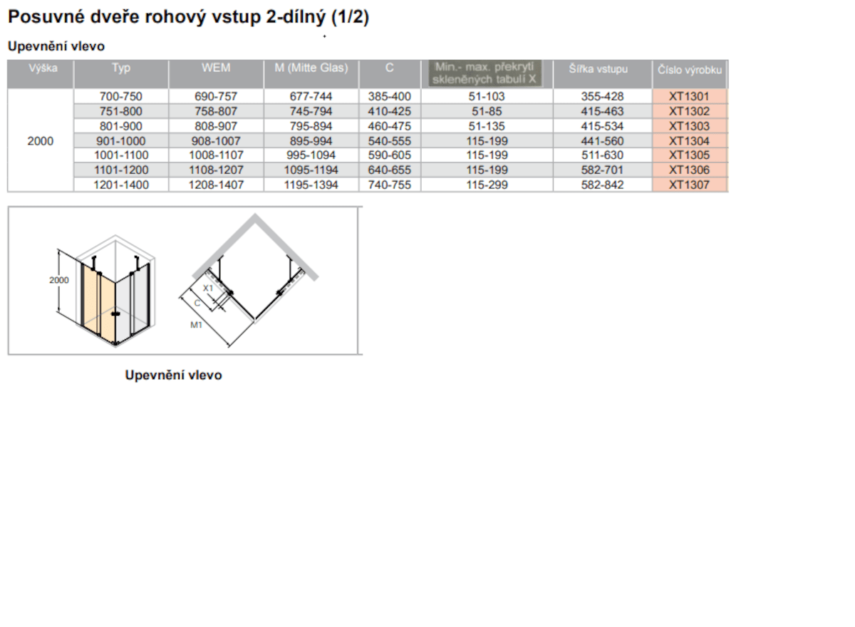 Pozor! Jedná se pouze o polovinu sprchového koutu. Kompletní výrobek se objednává dvěma položkami samostatných výrobků!