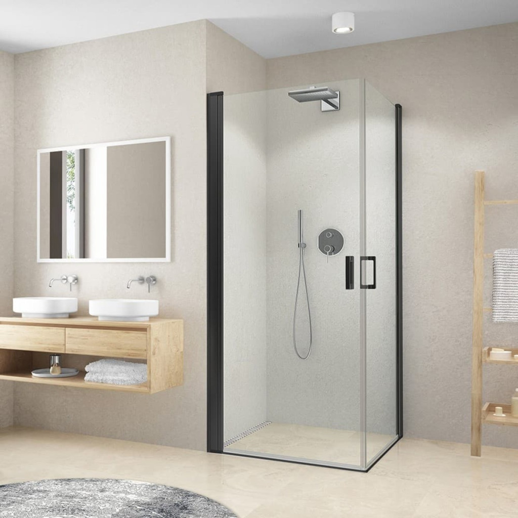 PARAMETRY:Balení: 1 ksHmotnost balení: 28  kgDruh výrobku: sprchové dveře Barva popisná: černá Barva základní: černá Orientace: levá i pravá Výbava: bez vaničky Výška: 200,2  cmSystém otevírání:...