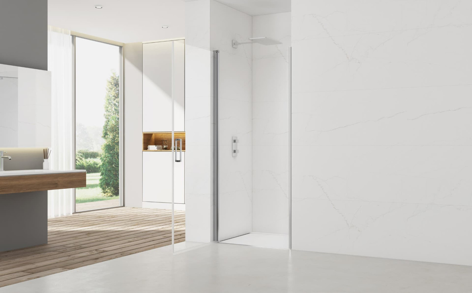 Balíček obsahuje sprchové dveře a profil SIKOPROFILSK, který využijete, pokud chcete umístit dveře do niky, aby se bezpečně zavřely. Balíček přináší všechny potřebné komponenty k sestavení otevíracích dveří do niky.