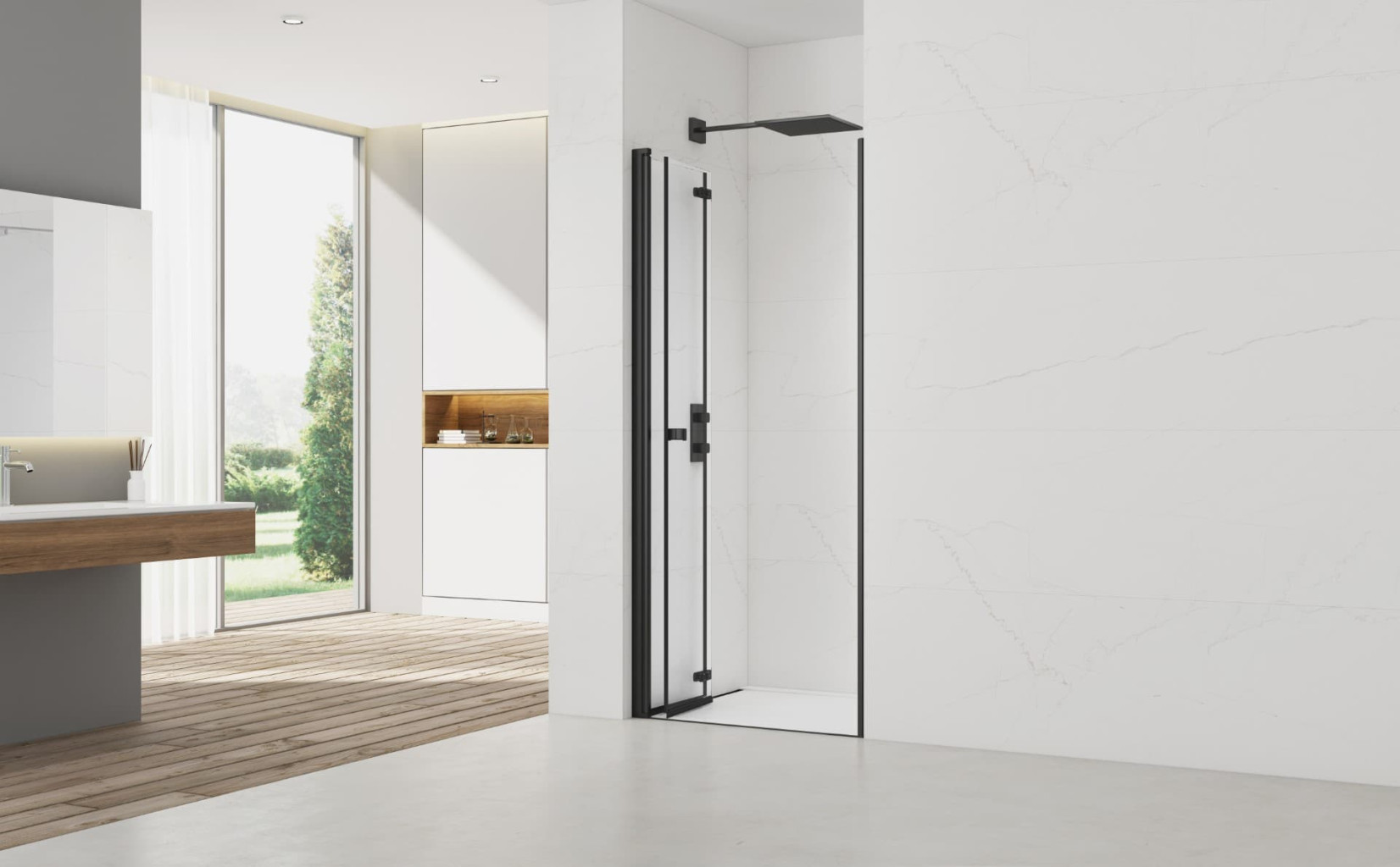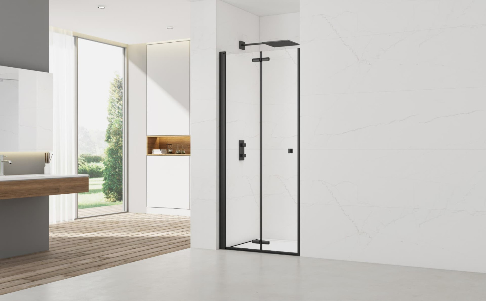 Sprchové dveře se vyznačují elegantním designem, zapuštěnými panty, kvalitním materiálem a snadnou údržbou. Kvalitní technické provedení dveří vám navíc zaručí dlouhodobou životnost. Součástí 6 mm bezpečnostního skla je povrchová úprava Easyclean, která usnadňuje čistění a minimalizuje usazování vodního kamene. Dveře jsou skládací a lze je složit přímo až na zeď. Montáž lze provést přímo na podlahu, ale i na sprchovou vaničku.