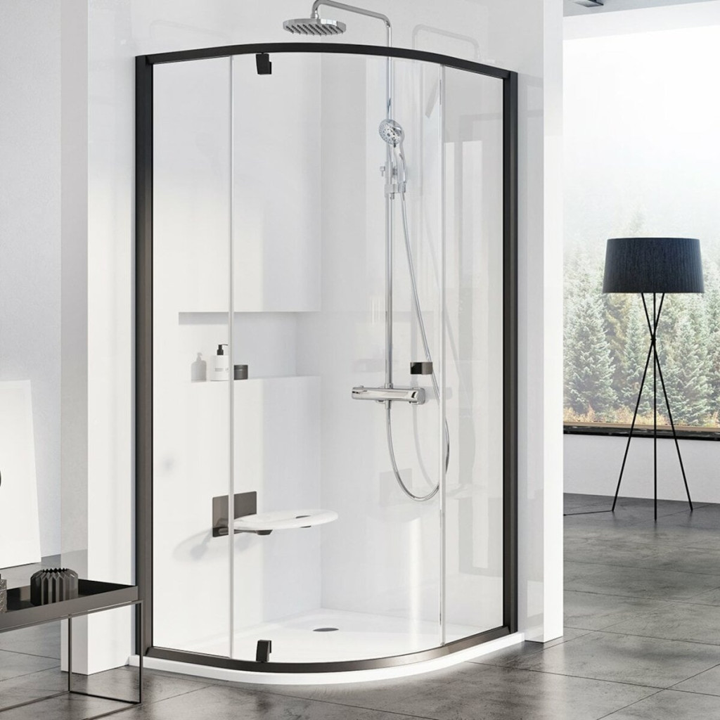 Minimum kovových profilů a maximum čistého bezpečnostního skla o tloušťce 6 mm. To jsou výrobky řady Pivot. Hodí se všude tam, kde chcete nechat vyniknout obklad stěn. Varianta Black zahrnuje černý rám a otočné panty v černé barvě. Skvěle kontrastují s plochami bezpečnostního skla a decentně přitahují pozornost.